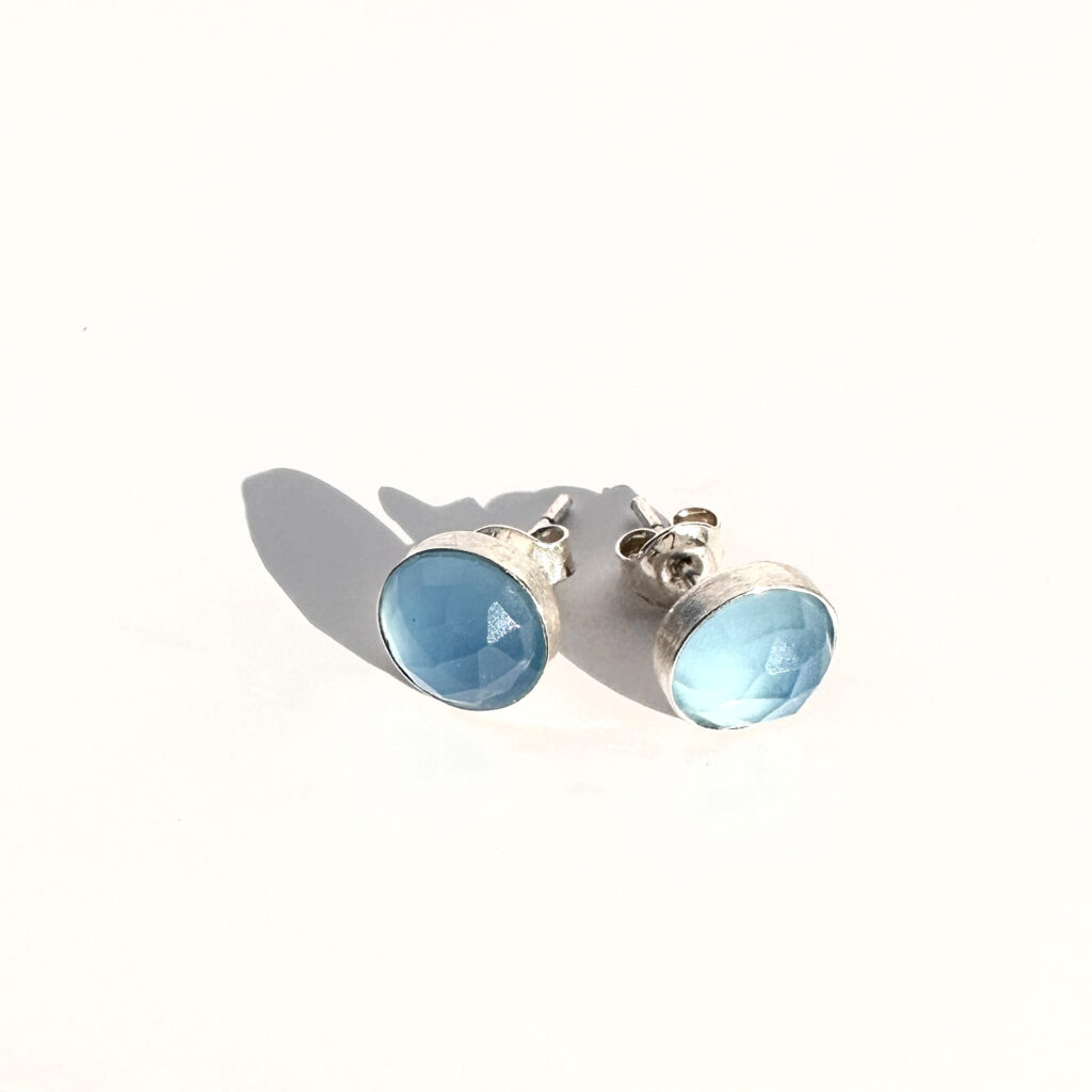 Małe, codzienne kolczyki wkrętki wykonane ze srebra 925 z kamieniem naturalnym o średnicy 8 mm. Mieszczą się na płatku ucha.